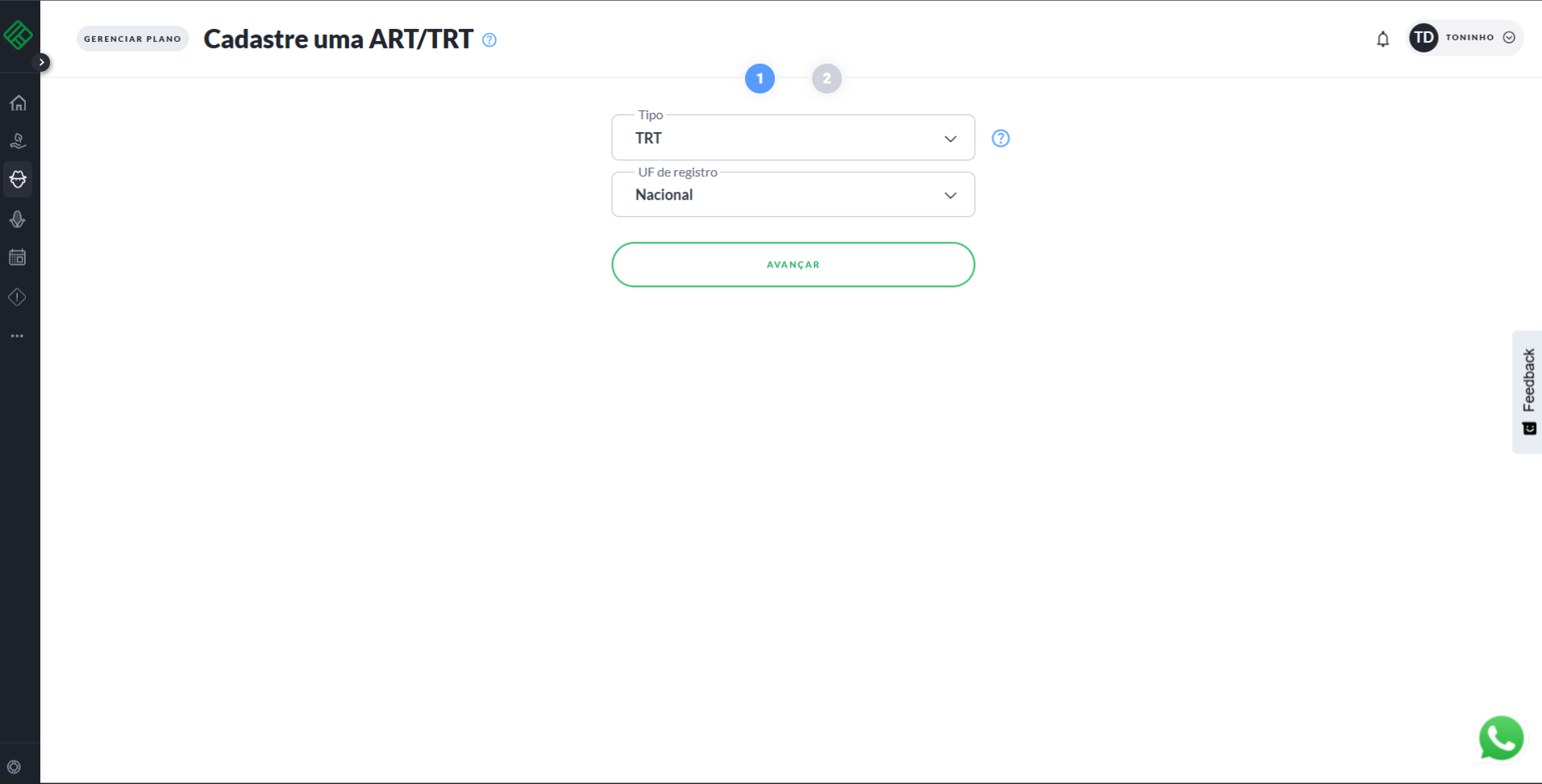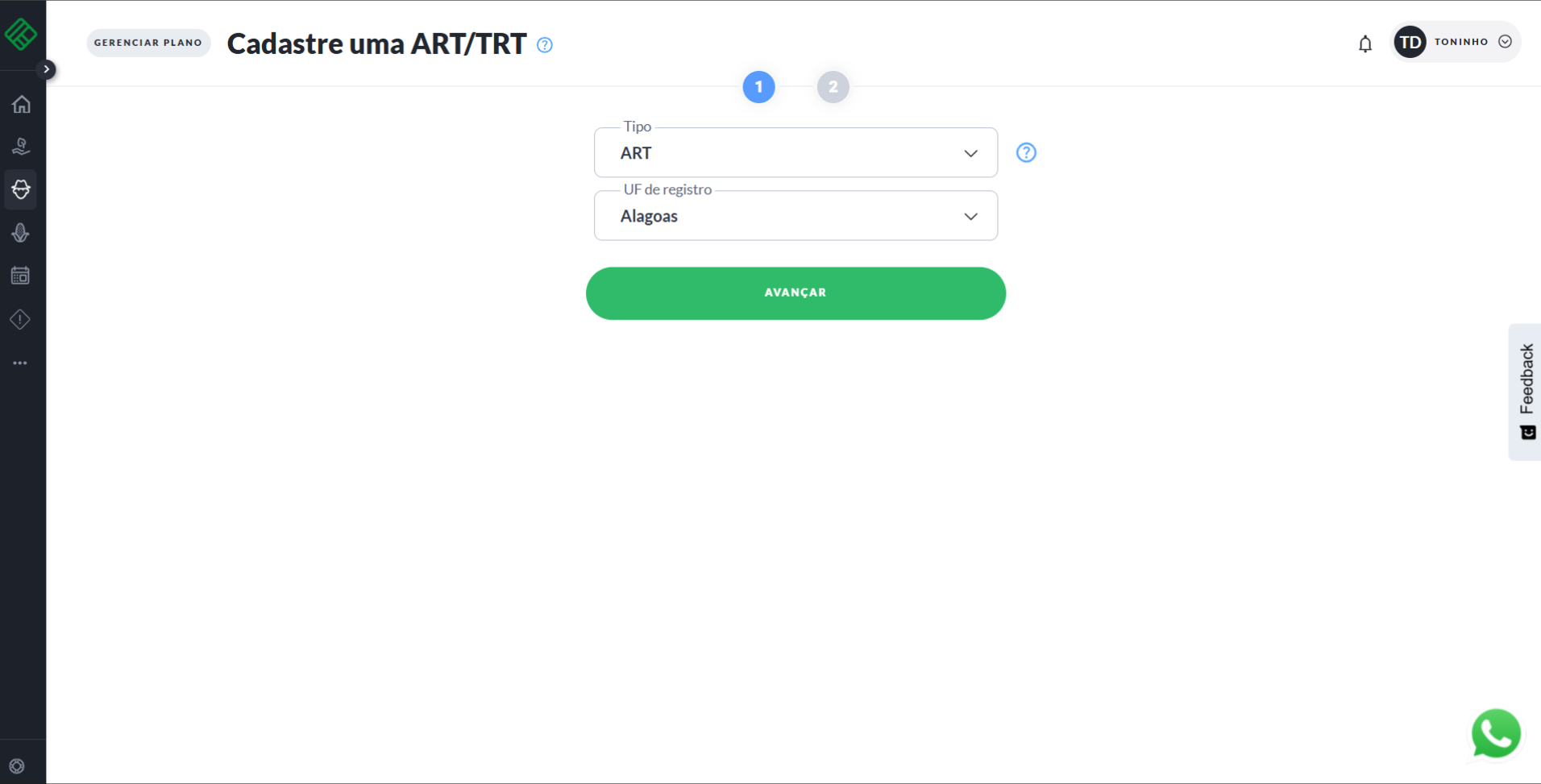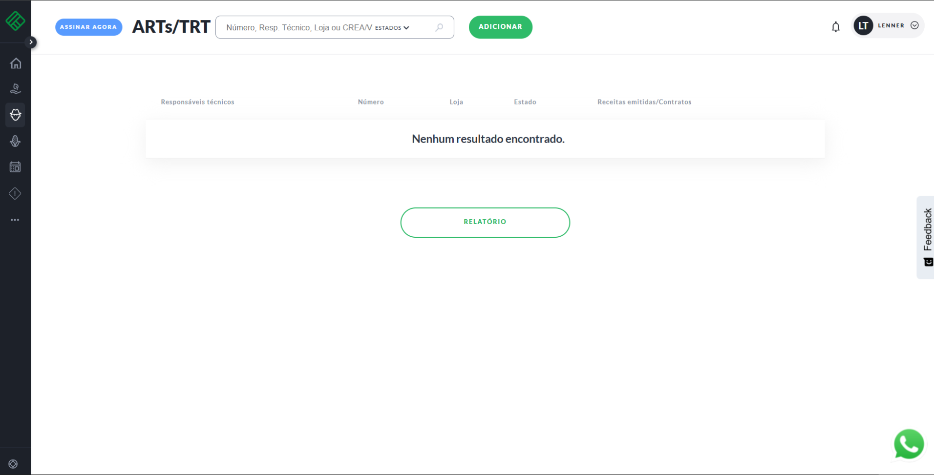 Antes de iniciar o cadastramento de sua ART ou TRT, você precisa cadastrar os dados do responsável técnico com seu respectivo CREA ou CFTA. Para saber mais acesse a página Como cadastrar responsável técnico.