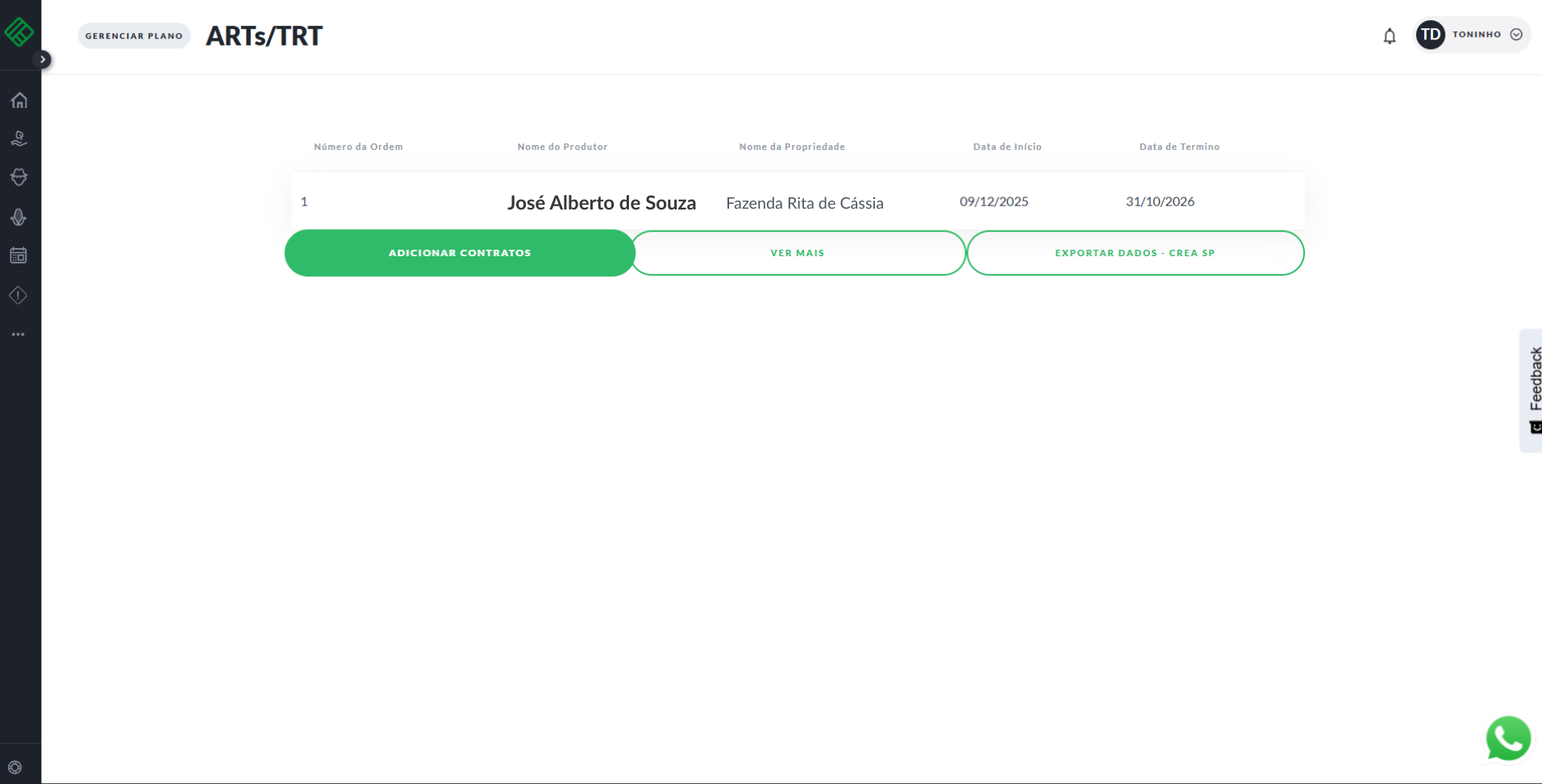 2.2 – Para incluir os contratos restantes de sua ART SP, acesse a plataforma do AgroReceita, faça o login e clique no menu ao lado em: