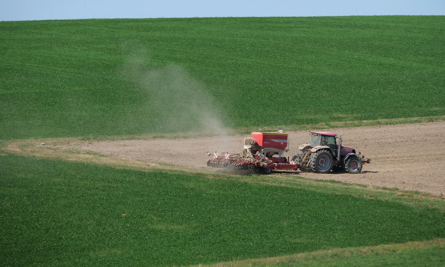 Trator na lavoura realizando trabalhos de plantio. Fonte: Canva.