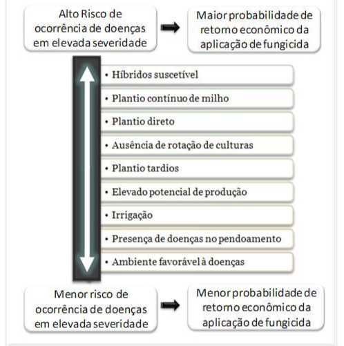 Classificação de ambientes quanto ao risco de doenças, severidade esperada e retorno econômico da aplicação de fungicidas na cultura do milho. Fonte: Rodrigo Veras.